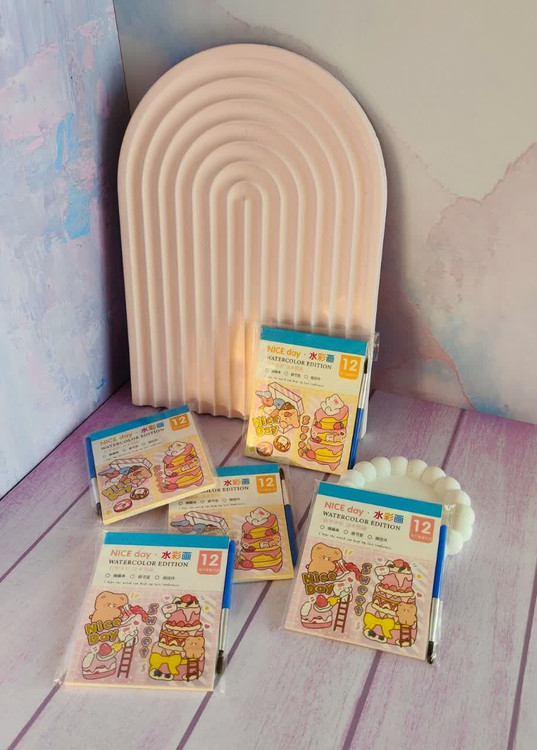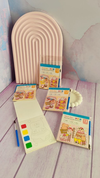 دفتر چه آبرنگی سایز کوچیک دارای 12 برگ مقوایی فشرده طراحی فانتزی در هر صفحه هم چند رنگ آبرنگی به همراه قلمو است که با یه خورده آب زدن قلمو میتونین نقاشیارو رنگ آمیزی کنین