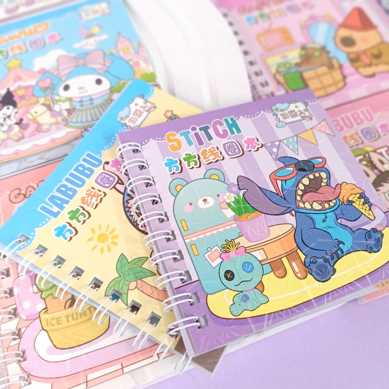 ۶ برگه اول استیکر داره بقیه دفترچه حاشیه دار
