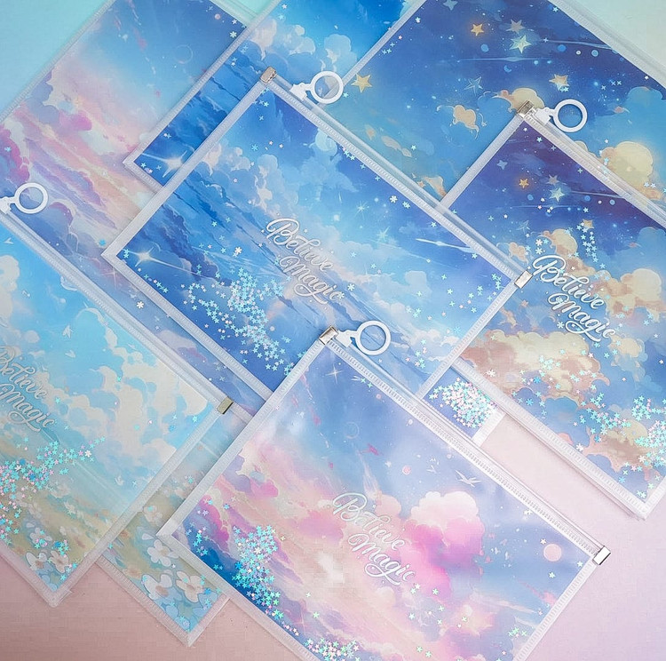 کاور زیپدار آکواریومی سایز A4 طرح آسمان ابری
